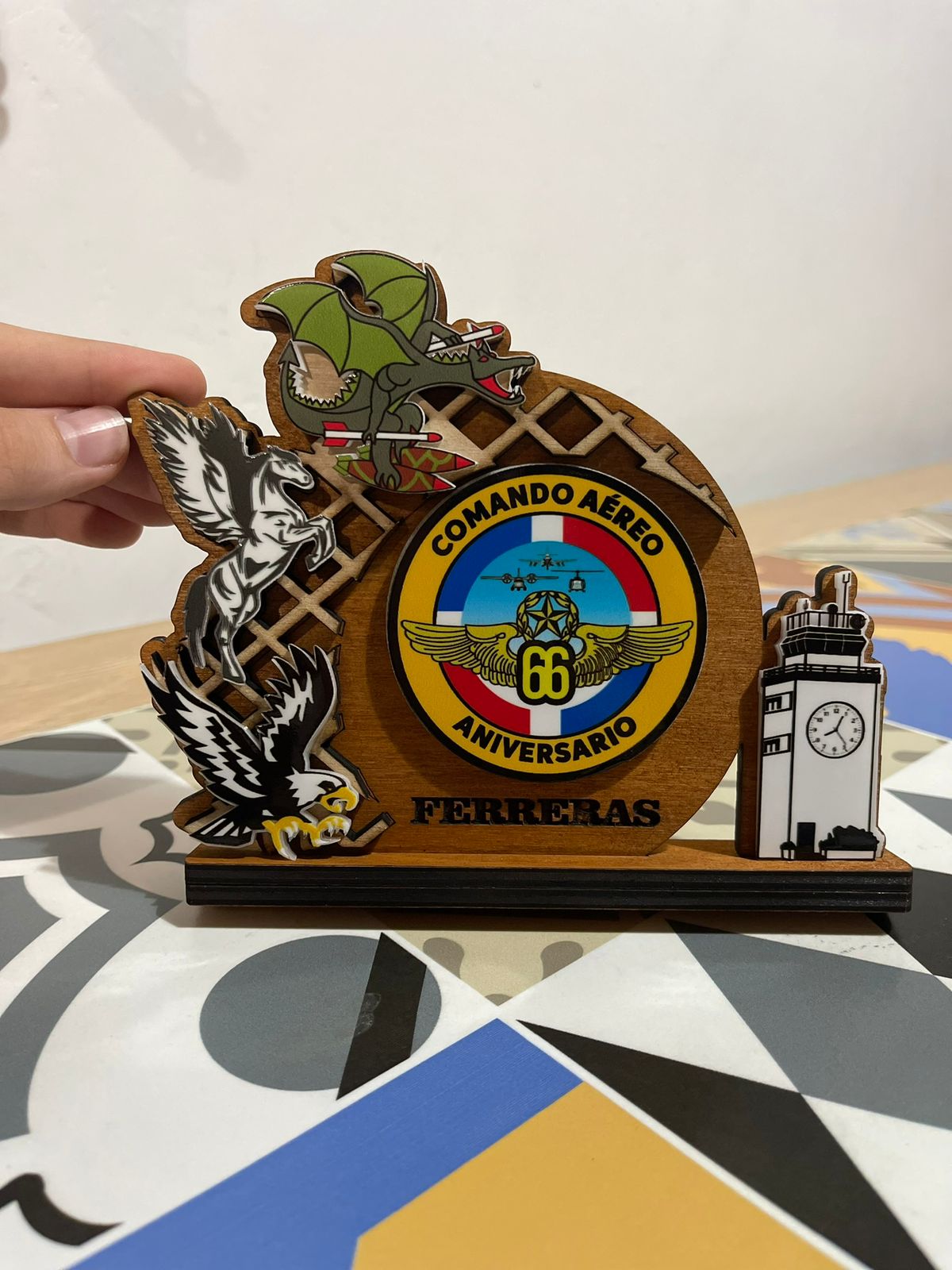 Reconocimiento en acrílico transparente y madera en tamaño de 12”x5”.