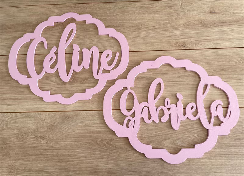 Nombre en tamaño de 30 pulgadas de largo con corazón personalizado.